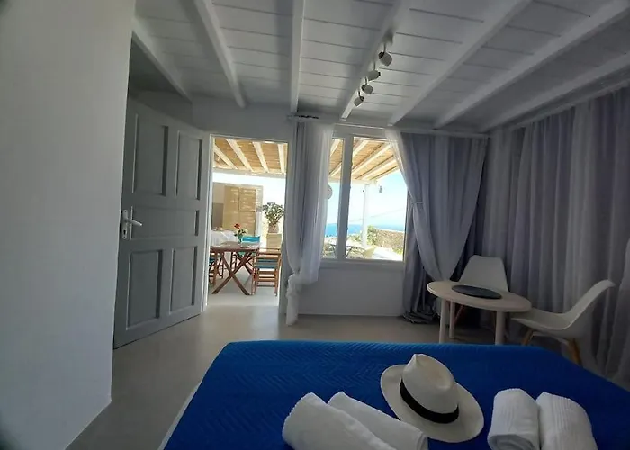 Les hôtes peuvent dîner sur place dans un coin repas extérieur équipée d'une cafetière/théière. Vous trouverez également un réfrigérateur, un four et de la verrerie pour préparer votre propre repas. L'aéroport le plus proche est de l'île de Mykonos, à environ 15 minutes en voiture du site.